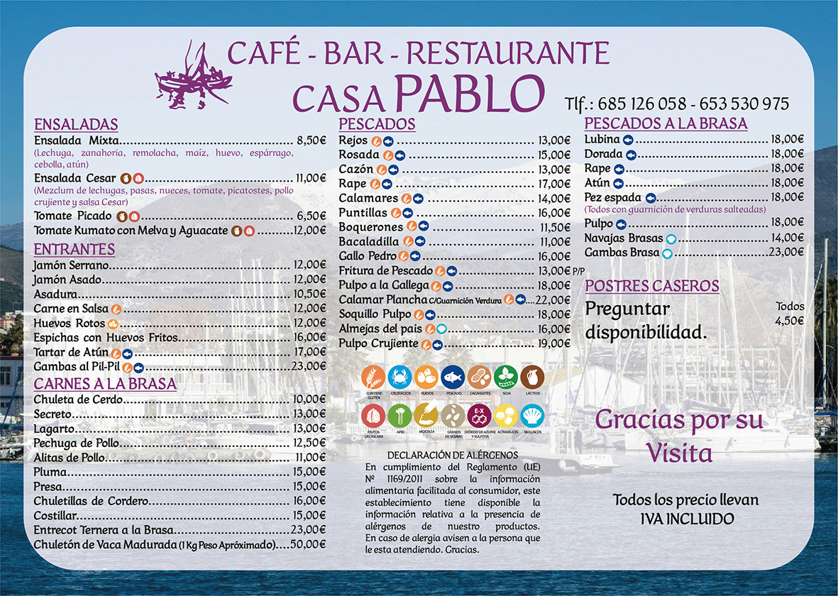 Estamos frente el Puerto Comercial de Motrl, Amplia terraza cubierta ,pecado fresco de lonja y variedad de carnes en nuestro horno de leña.